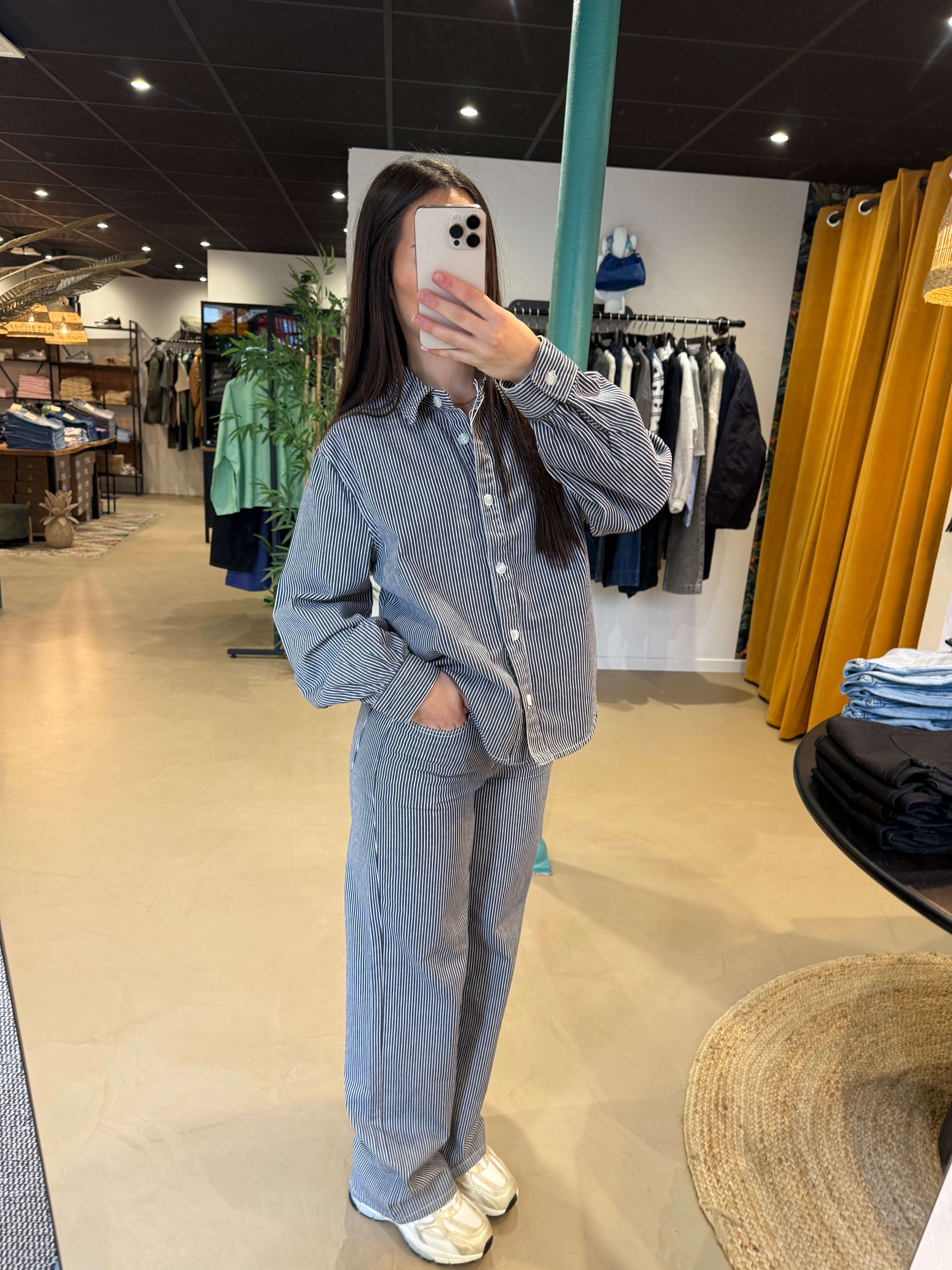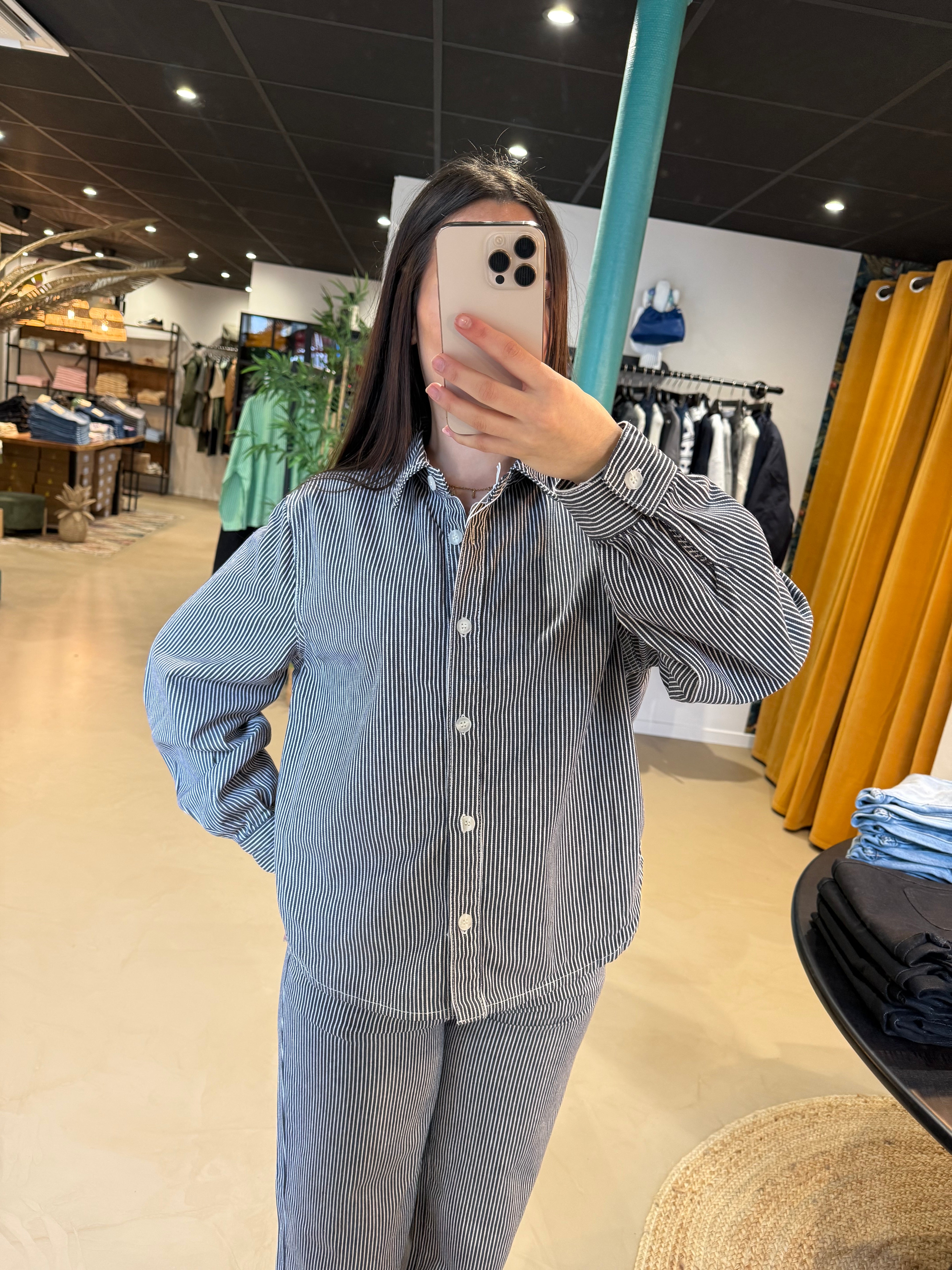 Chemise en jean à rayure bleue marine SALOME