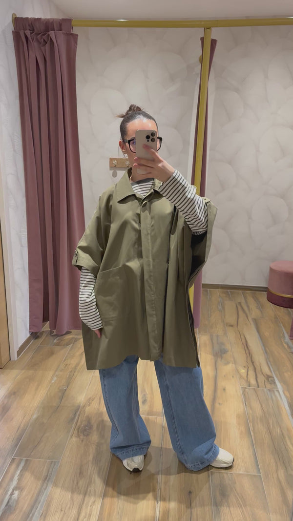 Trench à col classique avec fermeture zippée sur le devant. Manches larges avec ouvertures latérales et pattes de maintien. Détails de poches plaquées sur le devant. Coupe droite offrant aisance et su